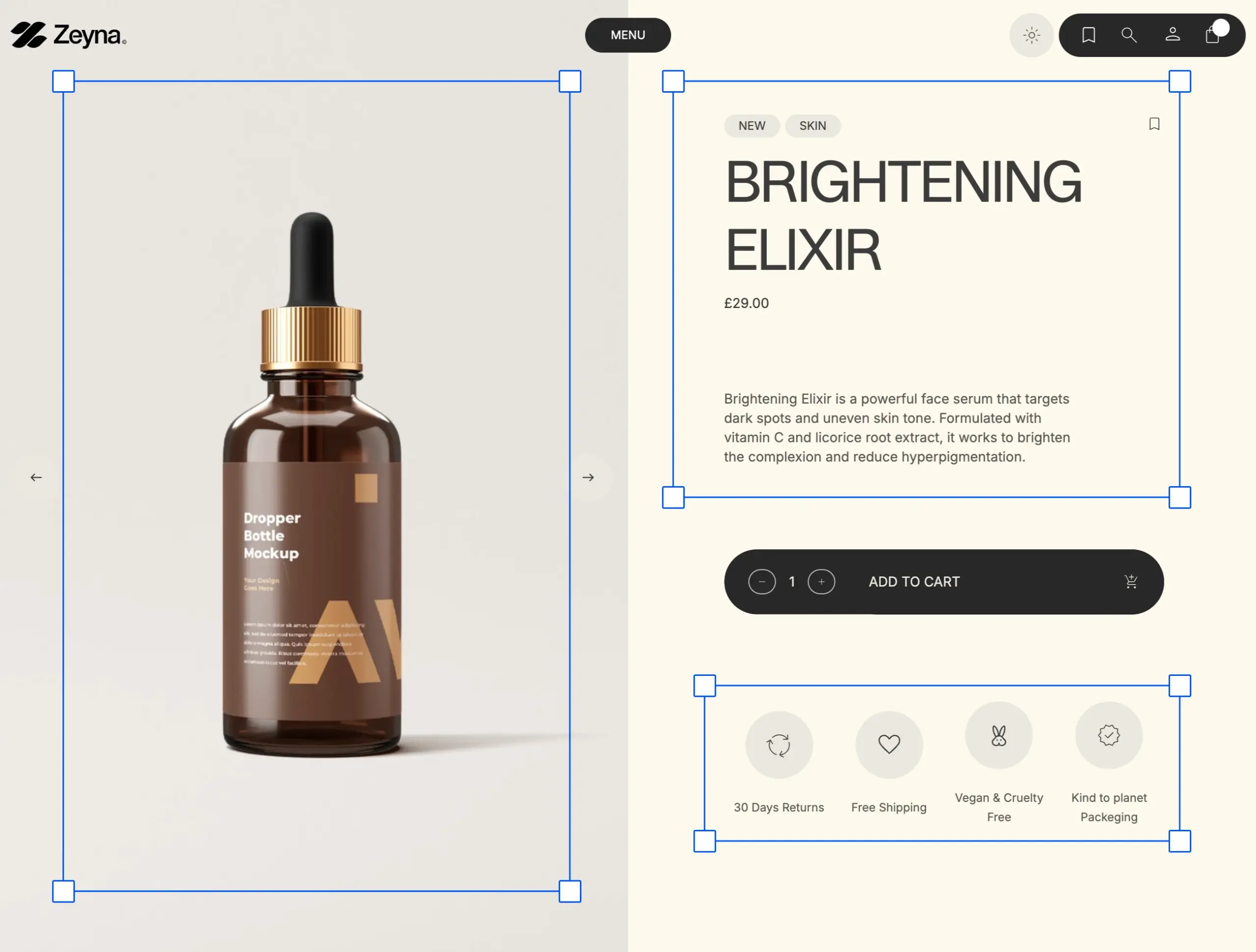 You’re never locked to a layout. Customize every structure using Elementor’s live builder with extended Zeyna widgets.
